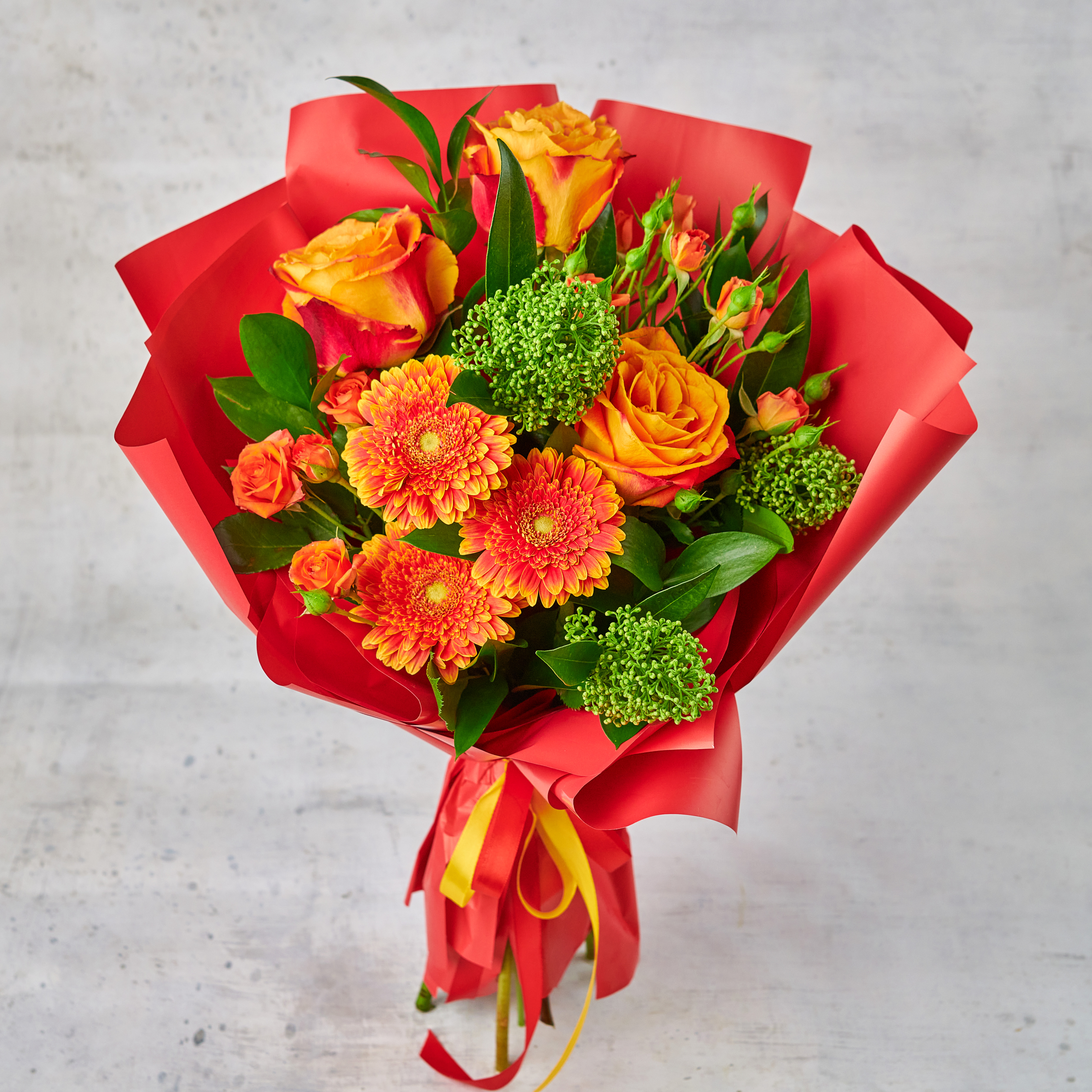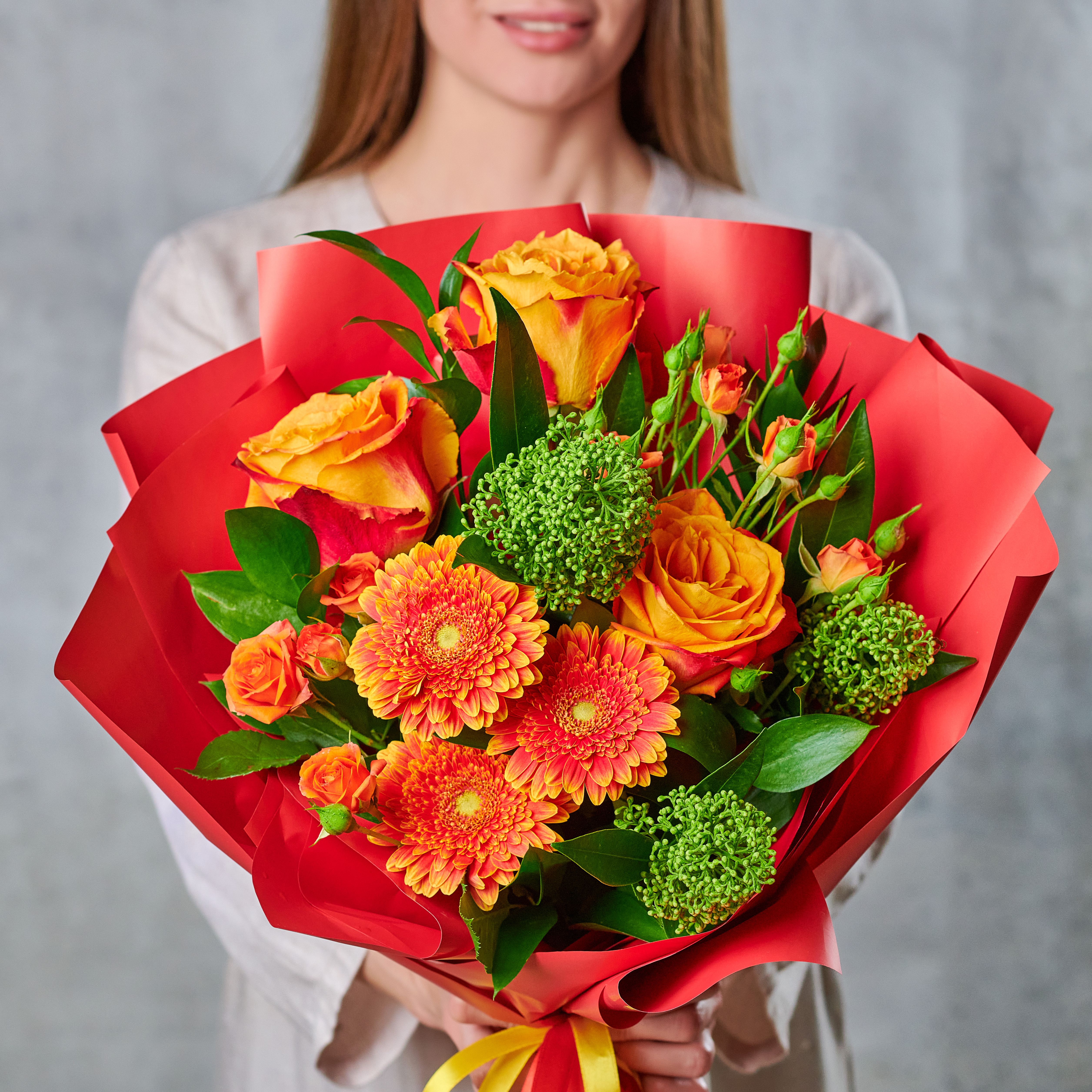 Цветочный огонь, который растопит любое сердце.Возможны небольшие изменения элементов. Общий вид и композиция букета будет сохранена.