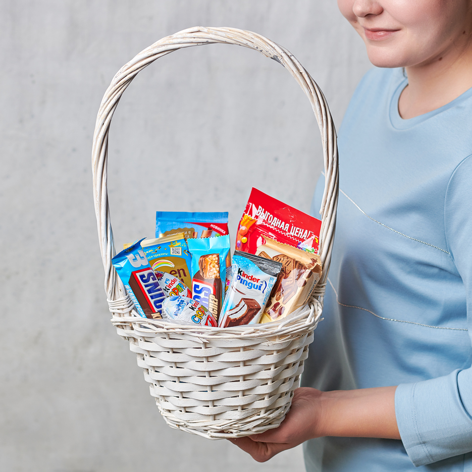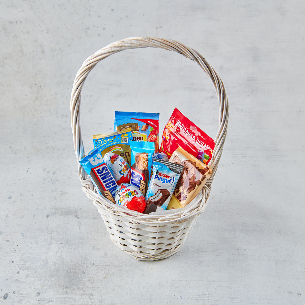 Дорога в шоколадный замок вымощена из самых вкусных сладостей, которые легко можно собрать в красивую корзину. Для тех кто любит удивлять и восхищать. Возможны небольшие изменения элементов. Общий вид и композиция букета будет сохранена.