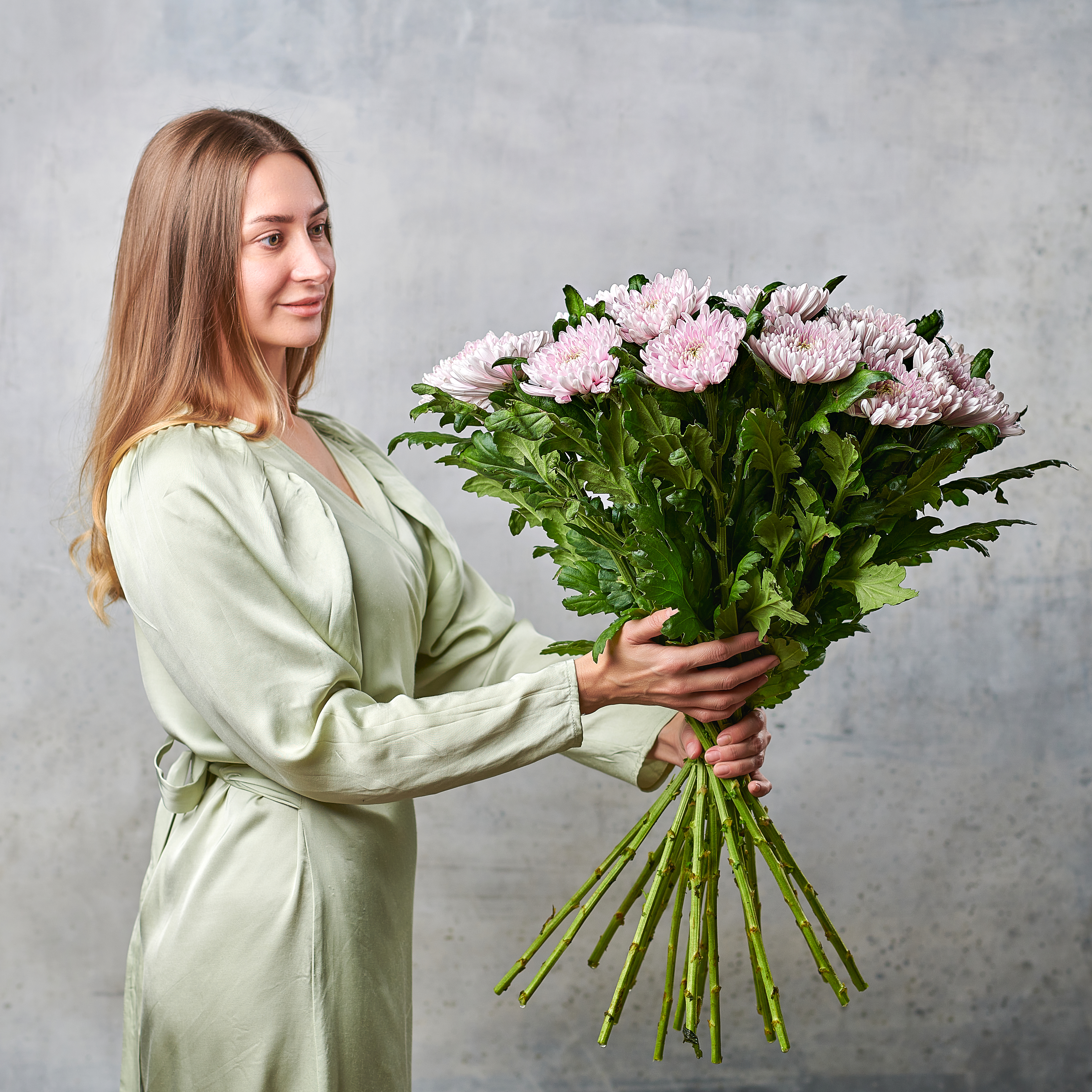Стойкая и нежная хризантема "Россано" имеет один крупный бутон с нежной лиловой окраской. Подойдет для ценителей стойкой красоты, аккуратных форм и нежных посланий.