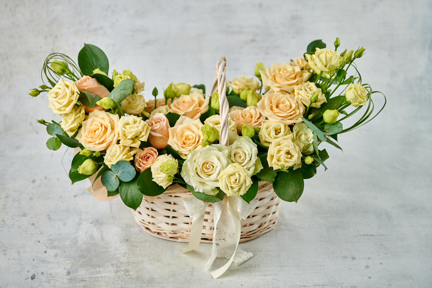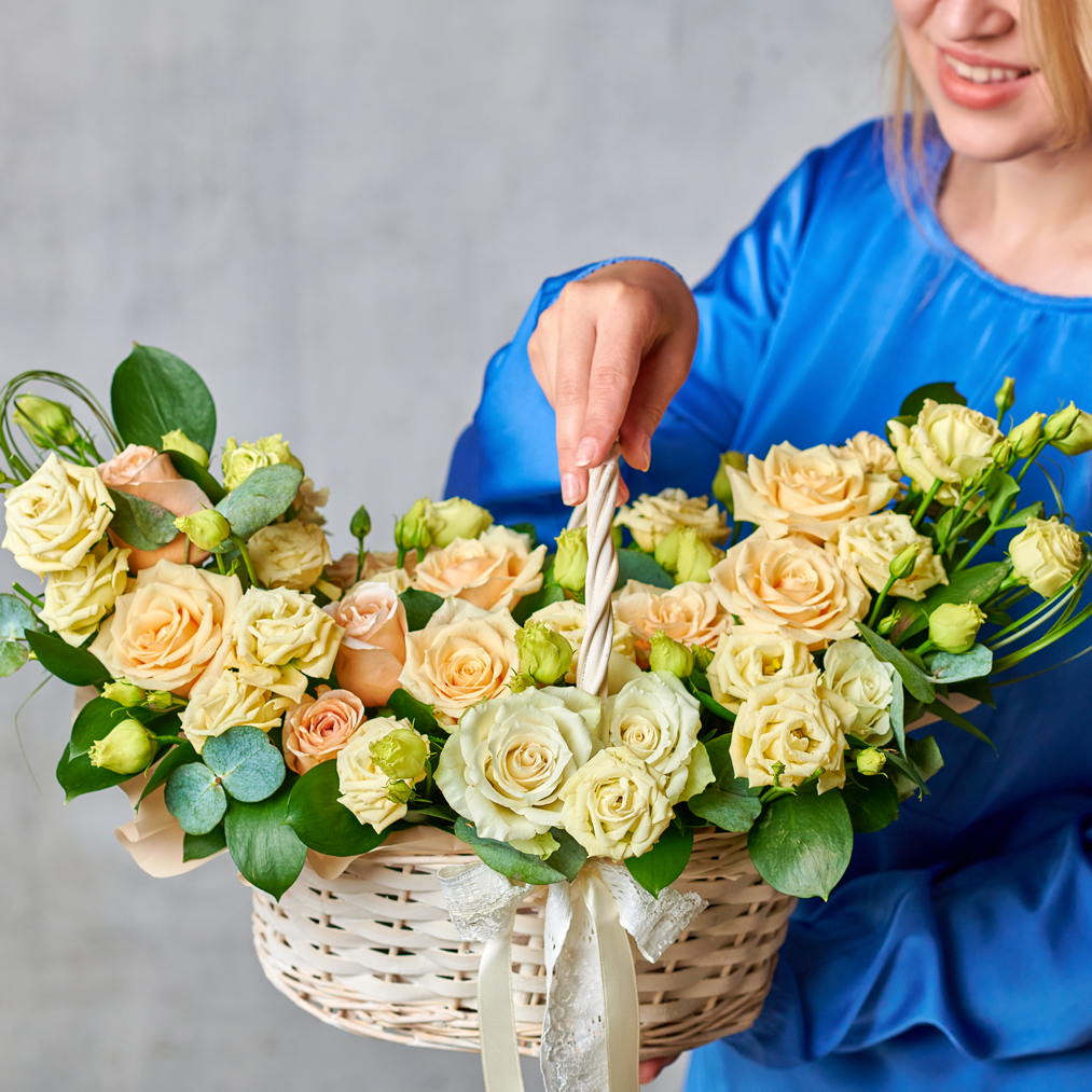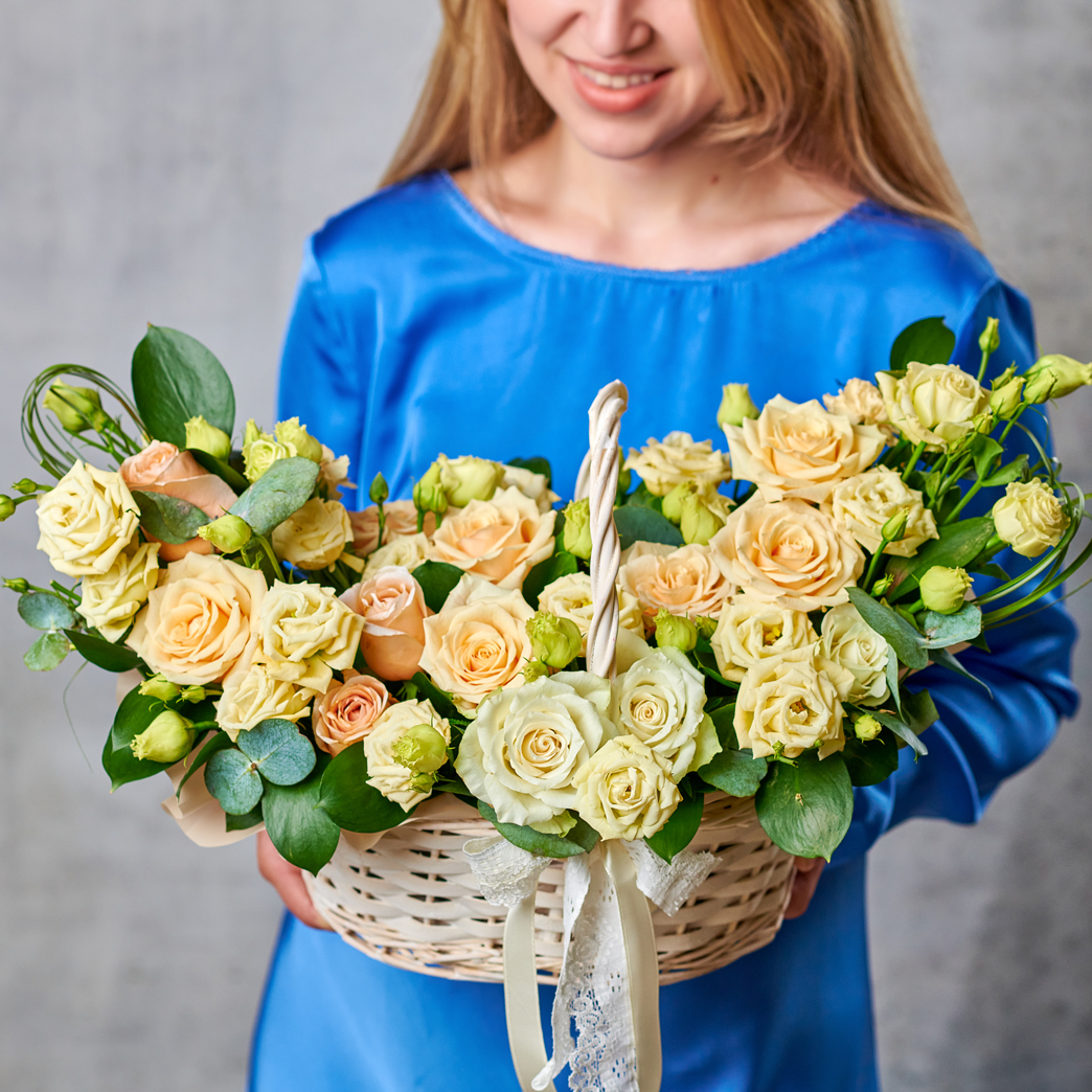 Нежная корзина из ароматных роз, торжественно, изысканно и невообразимо красиво. Сочетание, которое подойдет любому торжеству и поможет сделать праздник по-настоящему особенным.Возможны небольшие изменения элементов. Общий вид и композиция букета будет сохранена.